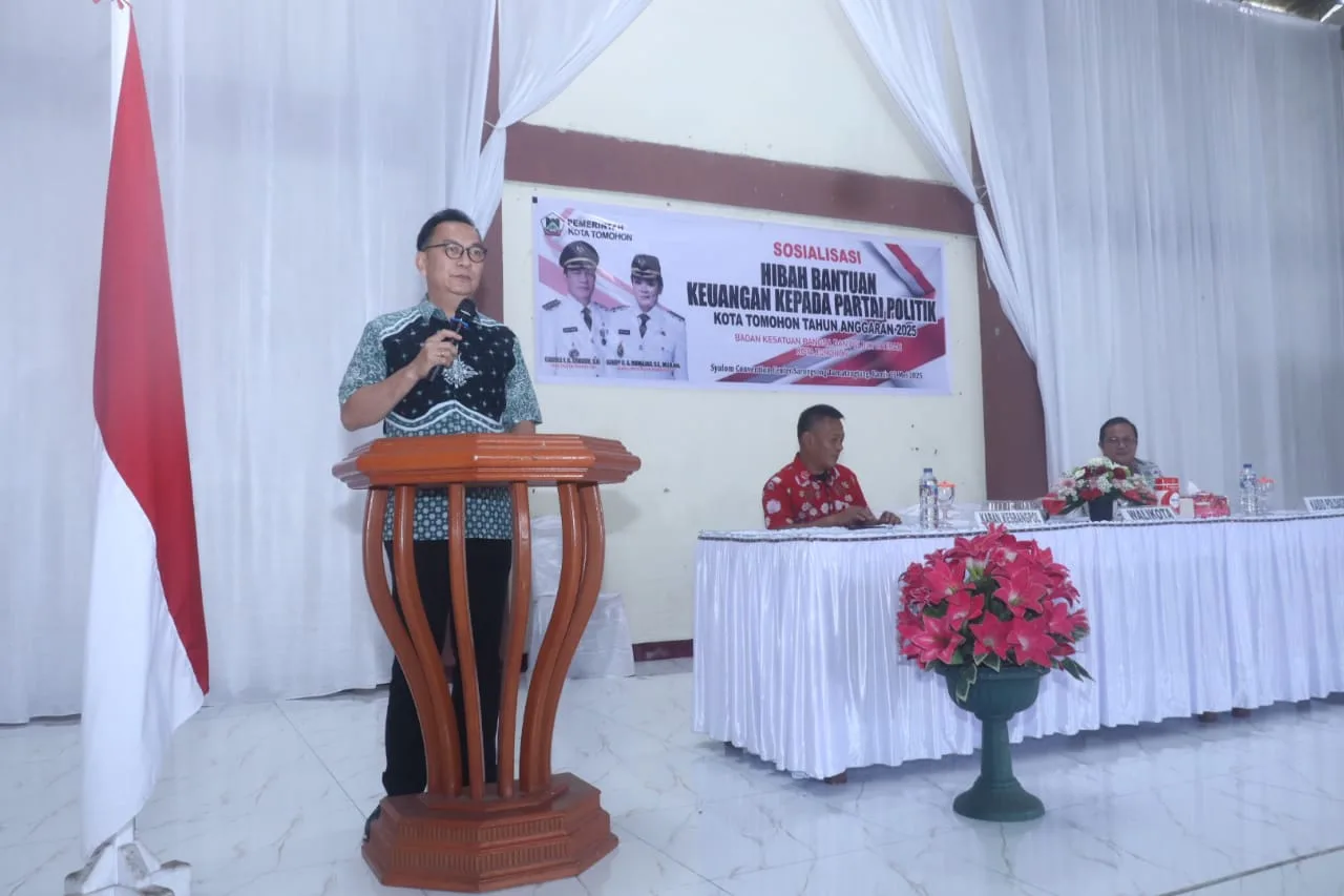 MediaRepublik.Id- Wali Kota Tomohon Caroll J. A. Senduk, S.H. menghadiri acara Sosialisasi Hibah Bantuan Keuangan kepada Partai Politik yang dilaksanakan di Syalom Convention Center, Tumatangtang, Tomohon. Kamis (22/05). Kegiatan ini bertujuan memberikan pemahaman dan arahan terkait penggunaan dana hibah sesuai ketentuan yang berlaku.