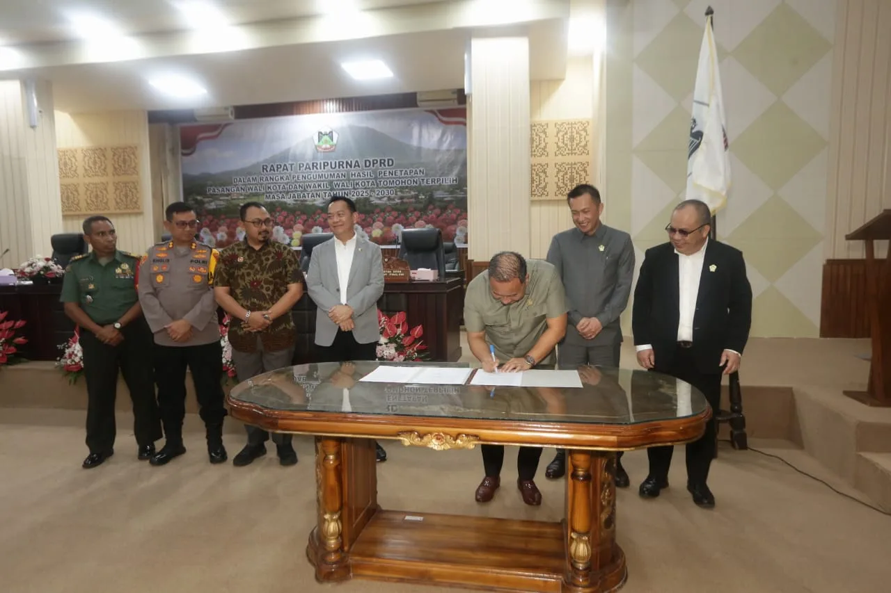 MediaRepublik.Id- Wali Kota Tomohon Caroll Joram Azarias Senduk, S.H., yang kembali terpilih untuk masa jabatan 2025-2030, menghadiri Rapat Paripurna DPRD Kota Tomohon dalam rangka pengumuman hasil penetapan pasangan Wali Kota dan Wakil Wali Kota terpilih.
