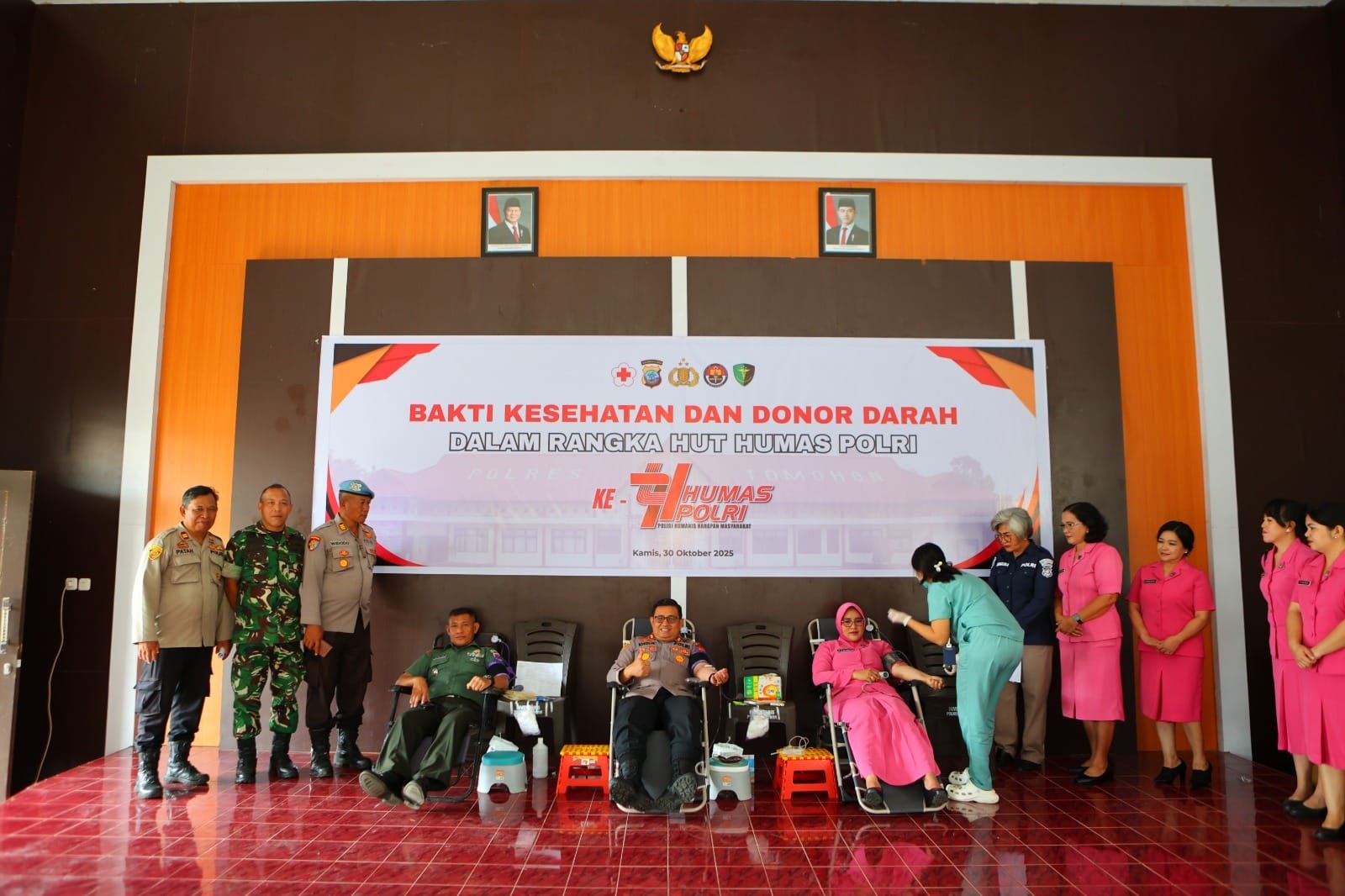 MediaRepublik.Id- Dalam rangka memperingati Hari Jadi Humas Polri ke-74 tahun 2025, Seksi Humas Polres Tomohon bekerja sama dengan Seksi Dokkes dan PMI Kota Tomohon menggelar kegiatan Bakti Kesehatan Donor Darah. Kamis (30/10), di Aula Parama Satwika Mapolres Tomohon.