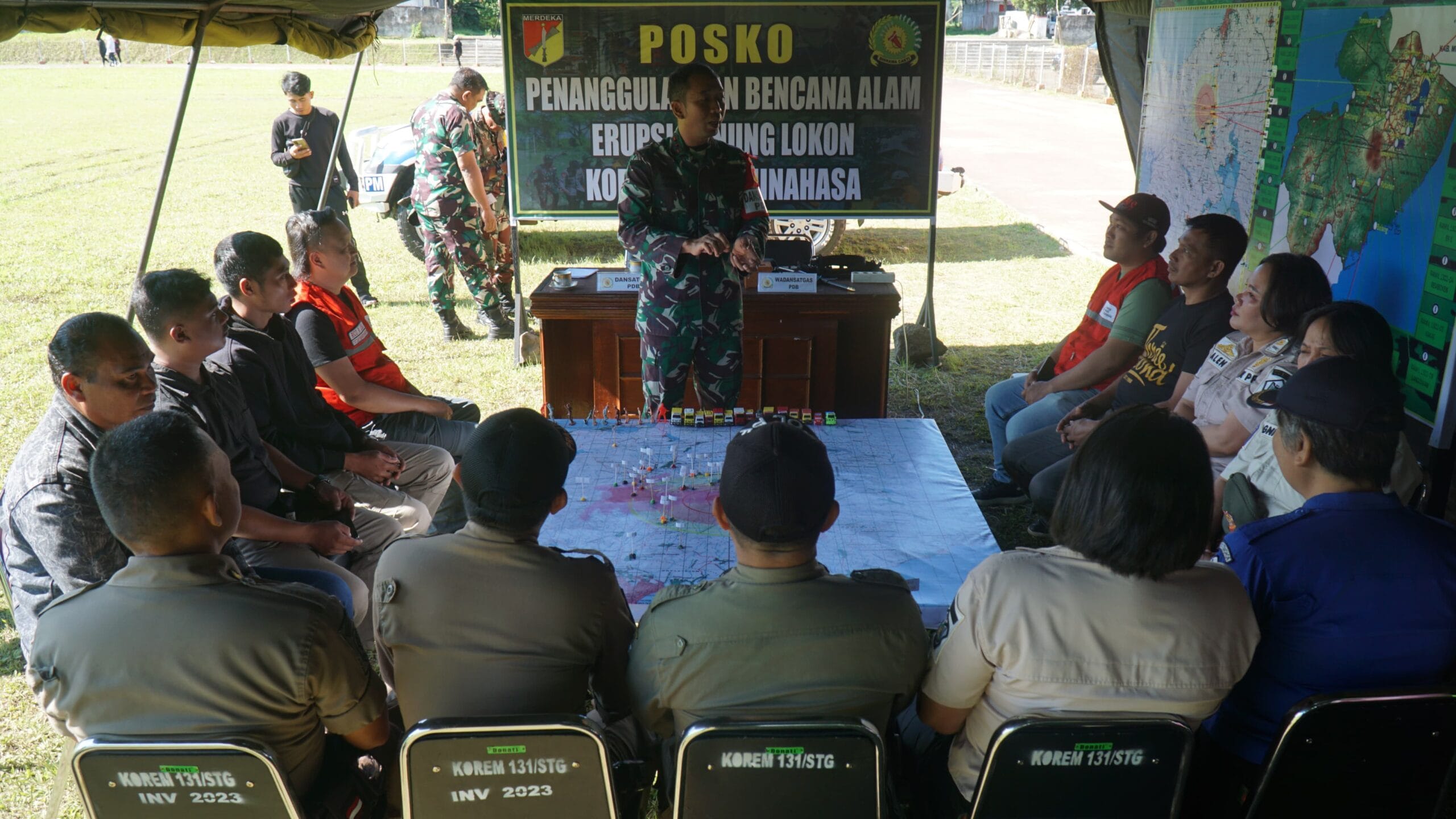 MediaRepublik. Id- Kodim 1302/Minahasa menggelar Latihan Gladi Lapangan hari ke-4 di Lapangan Babe Palar, Walian, Tomohon Selatan, Kamis (25/09). Latihan ini merupakan simulasi operasi bantuan kepada pemerintah daerah dalam menghadapi potensi bencana alam, khususnya erupsi Gunung Merapi.