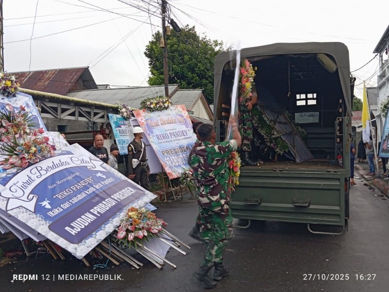 Sebagai bentuk kepedulian, pihak Kodim 1302/Minahasa menyiapkan dua unit kendaraan untuk membantu keluarga mengangkut karangan bunga menuju lokasi pemakaman. Sejumlah anggota TNI tampak sigap membantu prosesi, memastikan segala kebutuhan selama ibadah pemakaman berjalan lancar dan tertib.