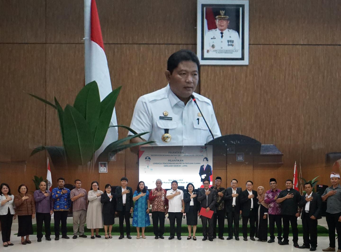 MINAHASA, mediarepublik.id – Penjabat Bupati Minahasa,Dr Jemmy Stani Kumendong MSi, melaksanakan pelantikan pengurus Badan Kerjasama Antar Umat Beragama (BKSAUA) dan Pelantikan Lembaga Pengembangan Pesta Paduan Suara Gerejawi Daerah (LPPD) periode tahun 2024-2028, bertempat di ruang sidang kantor Bupati Minahasa, Rabu (05/06).